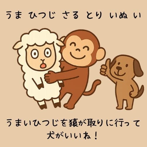 「うまいひつじを猿が取りに行って、犬がいいね!」